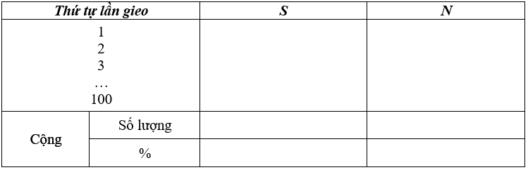 – Tỉ lệ xuất hiện mặt sấp: mặt ngửa khi gieo đồng kim loại là xấp xỉ 1:1