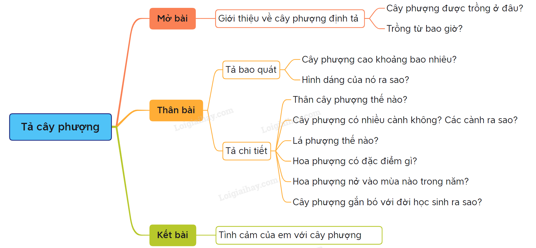 – Cây phượng có nhiều cành không? Các cành ra sao?