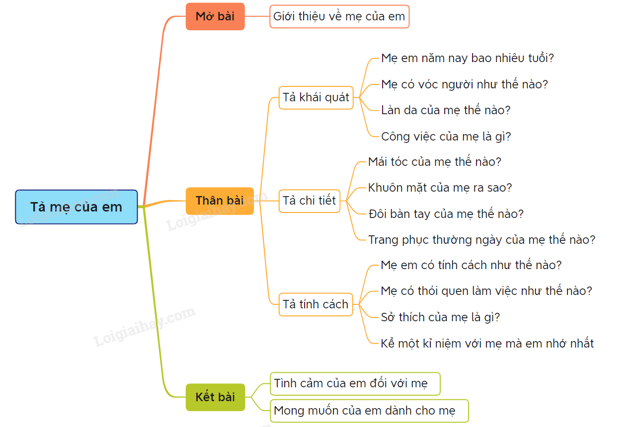 Năm nay mẹ em đã hơn bốn mươi tuổi rồi nhưng vẫn còn đẹp lắm. Khuôn mặt mẹ tròn trịa, kết hợp với mái tóc nâu xoăn nhẹ trông thật là đáng yêu. Đôi mắt mẹ bị cận nên lúc nào cũng mang theo một chiếc kính cận màu trắng. Khi mẹ cười, sẽ xuất hiện một chiếc răng khểnh rất đáng yêu. Vóc dáng của mẹ khá cân đối, nên mặc gì cũng xinh. Khi đi làm, mẹ sẽ mặc đồng phục, ở nhà mẹ lại thích những bộ đồ bộ thoải mái.
