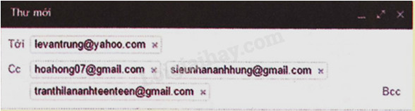 hoặc tổ hợp phím Ctrl + Shift + C (Mục này giúp em gửi thư đến nhiều địa chỉ thư điện tử cùng một lúc).