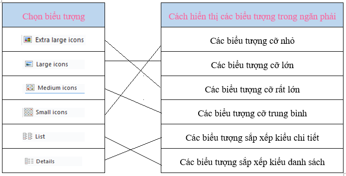 b) Nối mỗi ô ở cột trái với mỗi ô ở cột phải dựa vào các thao tác em đã thực hiện ở Bước 1, Bước 2