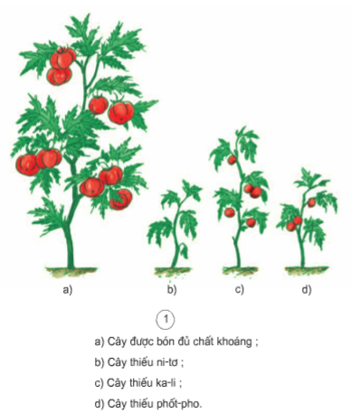 Các cây cà chua ở hình b, c, d thiếu chất khoáng gì? Kết quả ra sao?