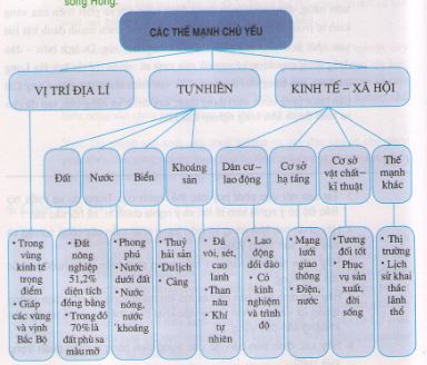 Hình 33.1. Sơ đồ thế mạnh chủ yếu của Đồng bằng sông Hồng