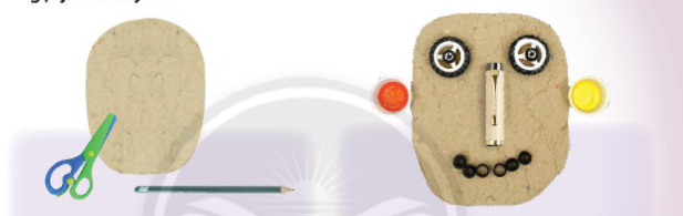 Quan sát hình và chỉ ra cách tạo hình khuôn mặt từ các vật liệu tìm được theo gợi ý dưới đây