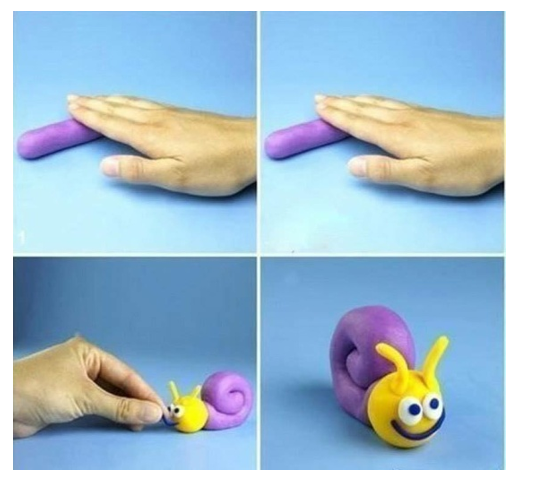 – Em đã tạo ra nét thẳng bằng cách lăn đất nặn thành hình trụ dài; Vo đất nặn thành hình tròn; Vê dài đất nặn sau đó uốn cong thành con ốc sên