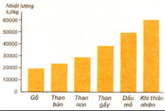 Hãy điền các loại nhiên liệu sau đây vào chỗ trống cho thích hợp (dựa vào hình 4.22 SGK): Gỗ, than gầy, khí thiên nhiên, than non.