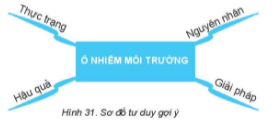 1. Tạo sơ đồ tư duy: Xác định chủ đề chính, chủ đề nhánh. Ví dụ, với đề tài ô nhiễm môi trường có thể xây dựng bản đồ tư duy theo gợi ý Hình 31:
