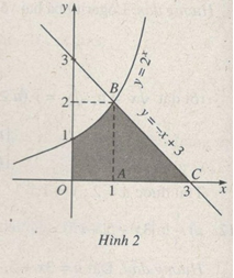 Có một nghiệm duy nhất là \(x = 1\) . do đó đồ thị hai hàm số cắt nhau tại điểm B có hoành độ \(x = 1\).Vậy diện tích cần tính ( phần tô đậm trong hình 2) là:
