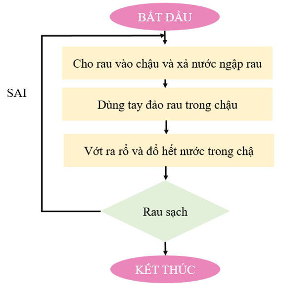 Hình sau mô tả thuật toán thực hiện công việc rửa rau ở bài 16.11 bằng sơ đồ khối.
