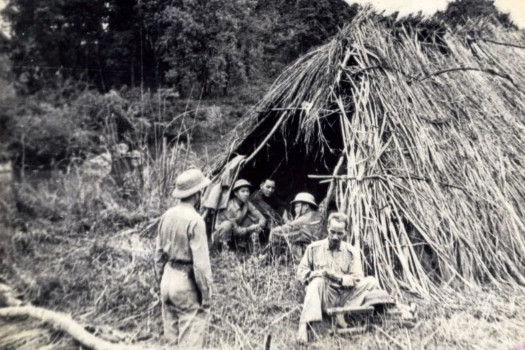 Dưới đây là hình ảnh Bác Hồ làm việc bên chiếc lều dựng tạm trên đường đi kiểm tra mặt trận Biên giới năm 1950: