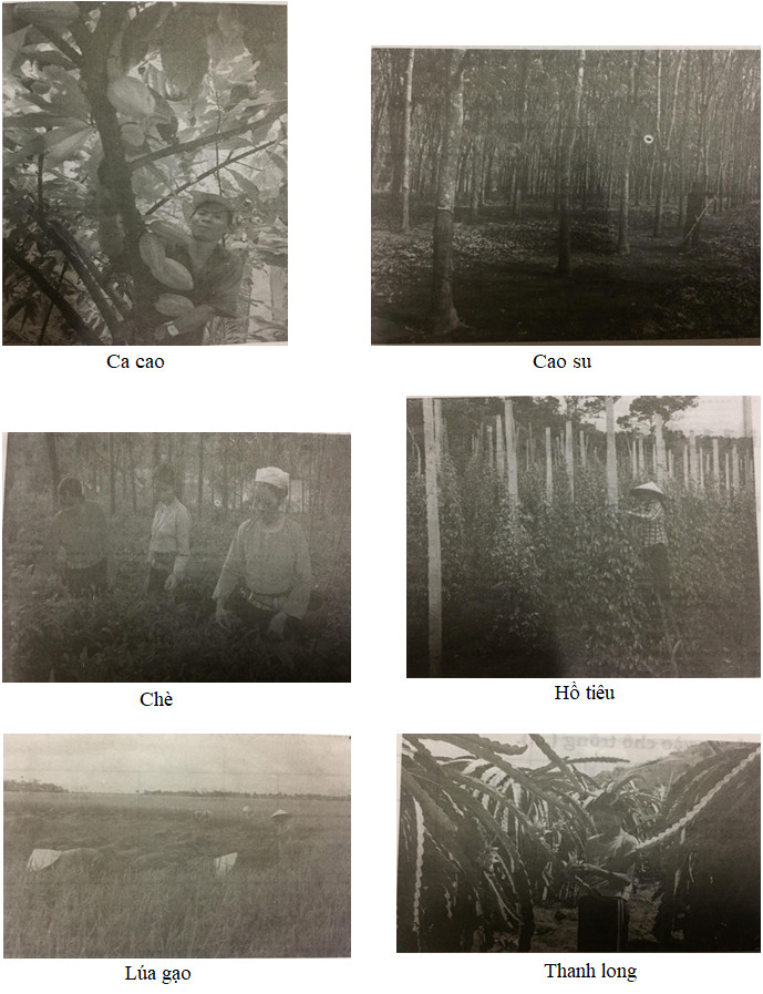 Các cây xứ nóng là cao su, hồ tiêu, lúa gạo, thanh long.