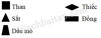 Quan sát hình 2, trang 70 SGK, hãy viết kí hiệu và tên 5 mỏ khoáng sản.