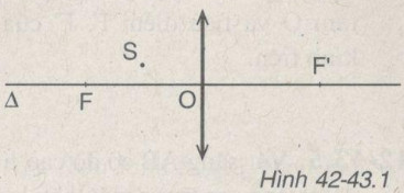Đặt một điểm sáng S trước một thấu kính hội tụ và nằm trong khoảng tiêu cự (hình 42-43.1). Dựng ảnh S của điểm S qua thấu kính đã cho. S là ảnh thật hay ảnh ảo?