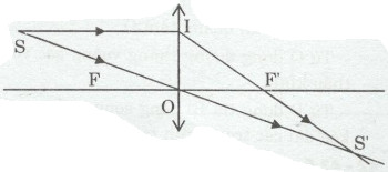 – Hai tia ló trên có đường kéo dài giao nhau tại S’, ta thu được ảnh ảo S’ của S qua thấu kính.