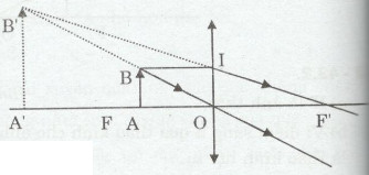 – Từ B dựng tia BI song song với trục chính của thấu kính. Nối IB’ kéo dài cắt trục chính tại F’. Lấy OF = OF’.