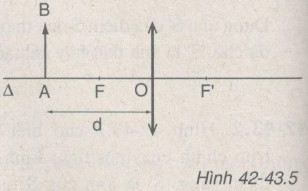Vật sáng AB có độ cao h được đặt vuông góc trước một thấu kính hội tụ tiêu cự f như hình 42-43.5. Điểm A nằm trên trục chính cách thấu kính một khoảng d=2f.