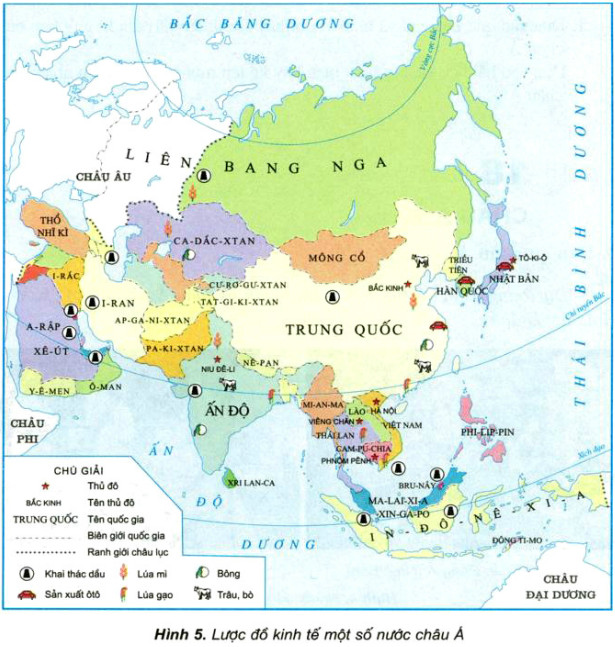 Nêu một số ngành sản xuất của khu vực Đông Nam Á được thể hiện trên lược đồ hình 5, SGK, trang 106.