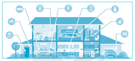 Quan sát các biểu tượng trong hình dưới đây và cho biết ngôi nhà thông minh này có thể được lắp đặt những hệ thống nào