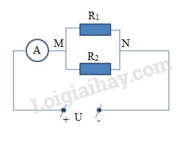 Hai điện trở R1 và R2 được mắc theo hai cách vào hai điểm M, N trong sơ đồ hình 6.1, trong đó hiệu điện thế U=6V. Trong cách mắc thứ nhất, ampe kế chỉ 0,4A. Trong cách mắc thứ hai, ampe kế chỉ 1,8A.