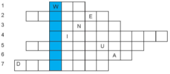 GIẢI ô CHỮ. Hãy tìm từ khoá trong cột màu xanh của ô chữ dưới đây. Biết rằng mỗi từ hoặc cụm từ trong mỗi hàng là đáp án cho mỗi câu hỏi tương ứng sau: