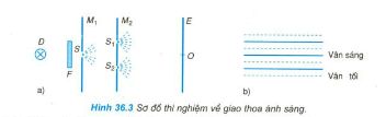 C2. Trong thí nghiệm ở hình 36.3, độ lệch pha của hai nguồn S1, S2 bằng bao nhiêu?