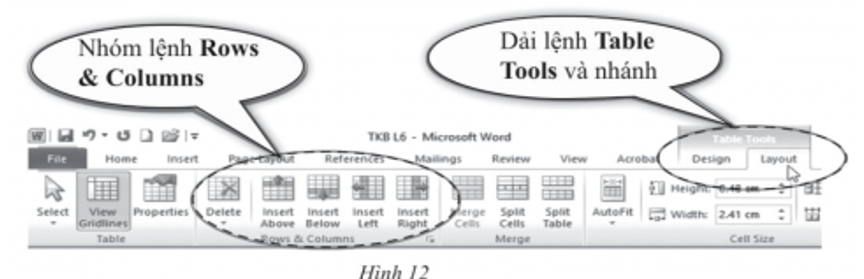 4) Dải lệnh Table Tools và nhánh Layout xuất hiện khi có dấu hiệu đang làm việc với bảng, điền hình là con trỏ soạn thảo đang được đặt trong một ô bất kì của bảng.