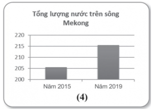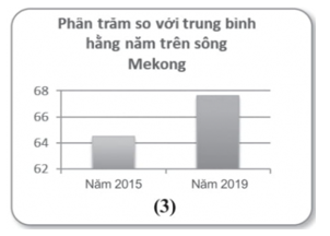 Hãy cho biết bảng bên trình bày thông tin của những biểu đồ nào trong các phương án sau đây: Tổng lượng nước và phần trăm so với trung bình hằng năm trên sông Mekong