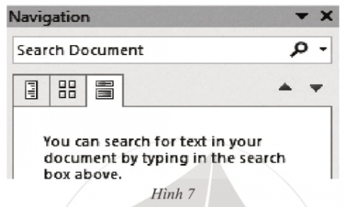 1) Trong hộp thoại Navigation, nhập cụm từ cần tìm vào ô Search Document (Hình 7).