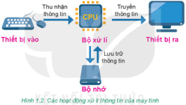 Máy tính gồm mấy thành phần để có thể thực hiện được các hoạt động xử lí thông tin?