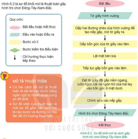 – Quan sát lại sơ đồ khối hình 6.2 và hướng của mũi tên, rút ra nhận xét về vai trò của hướng mũi tên.