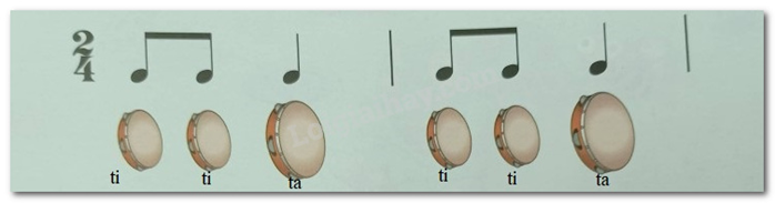 Đọc tiết tấu, sau đó vỗ tem-bơ-rin theo mẫu sau: