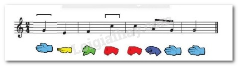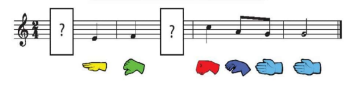 Chọn một tên nốt Son hoặc La, Đố để thay cho mỗi dấu chấm hỏi(?); sau đó đọc nhạc với kí hiệu nốt nhạc bàn tay