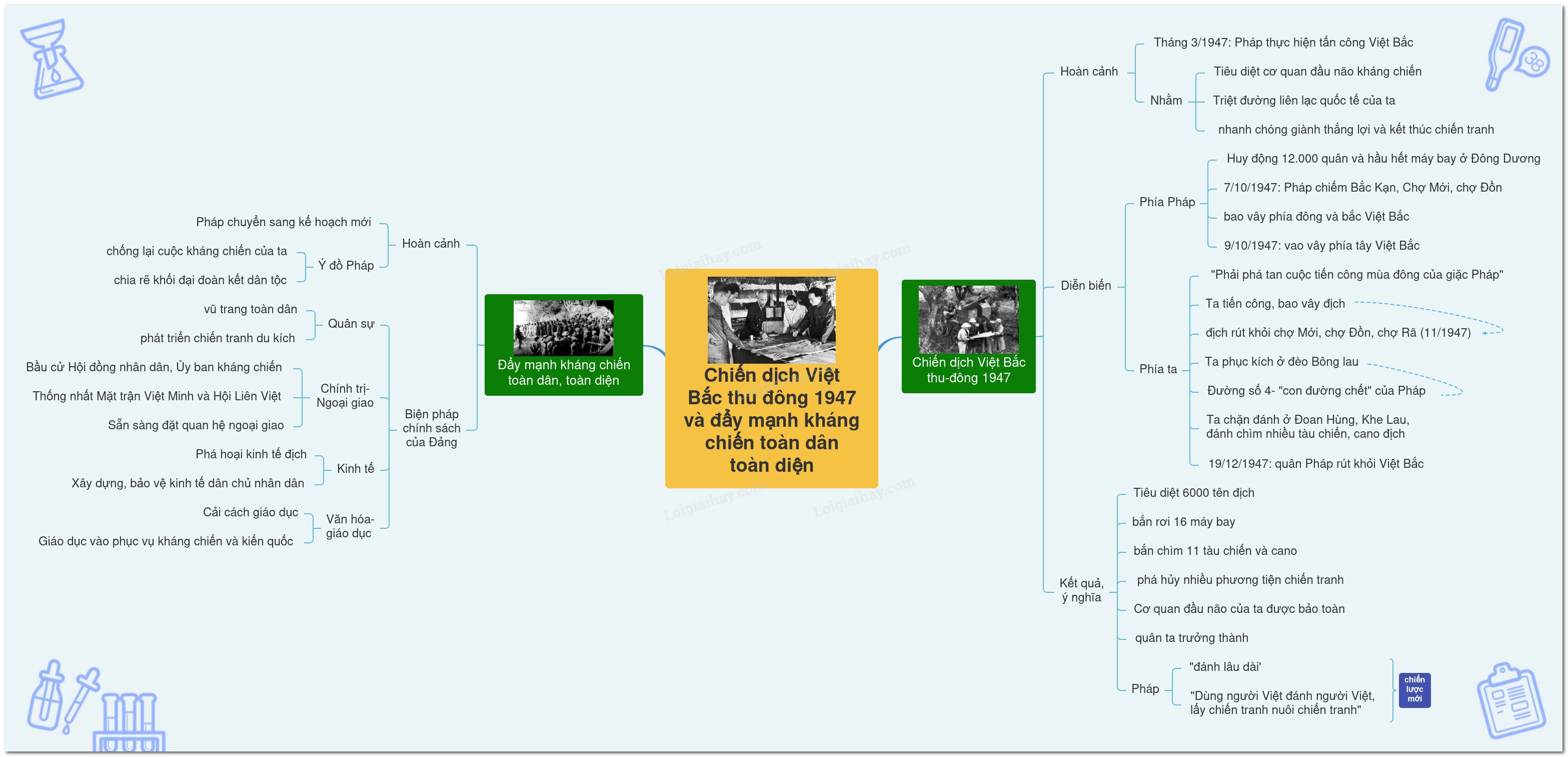Sơ đồ tư duy Chiến dịch Việt Bắc thu đông năm 1947 và việc đẩy mạnh kháng chiến toàn dân, toàn diện
