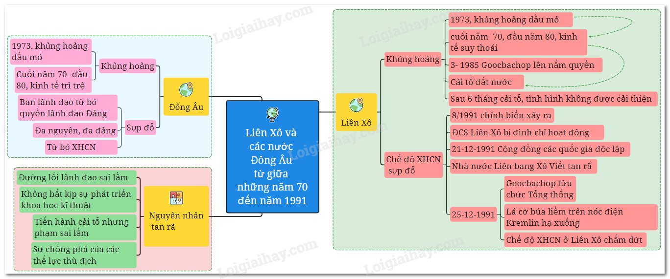 Sơ đồ tư duy Liên Xô và các nước Đông Âu từ giữa những năm 70 đến đầu những năm 90 của thế kỉ XX