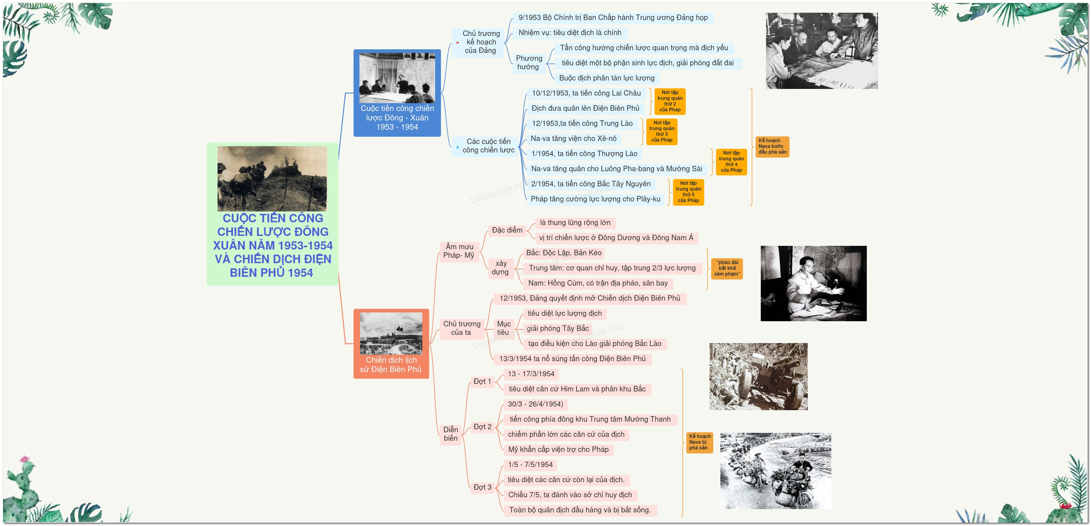 Sơ đồ tư duy Cuộc tiến công chiến lược đông – xuân 1953 – 1954 và chiến dịch Điện Biên Phủ năm 1954