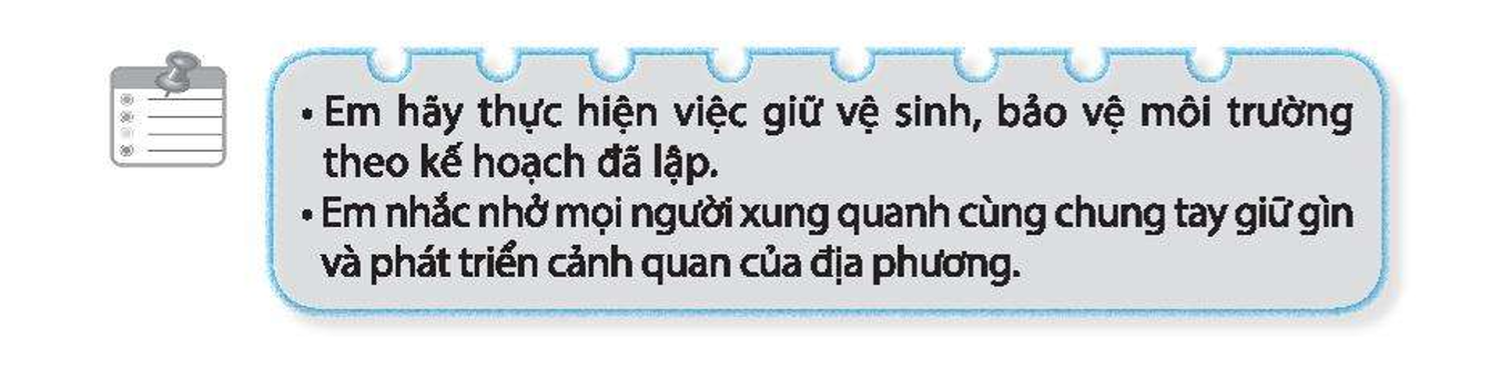 – Qua thời gian quan sát các em khi ở nhà, phụ huynh cảm thấy các em học sinh đã thực hiện bài tập như thế nào? Các em đã có nhận thức đúng đắn về việc bảo vệ môi trường chưa? Các em có thực hiện việc giữ gìn vệ sinh, bảo vệ môi trường theo kế hoạch đã lập hay không? Khi thấy các hành vi làm ô nhiễm môi trường, các em có nhắc nhở mọi người không?