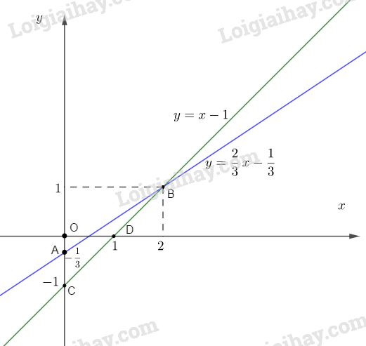 Đường thẳng (d) qua hai điểm :  \(\left( {0; – {1 \over 3}} \right)\) và ( 2; 1).