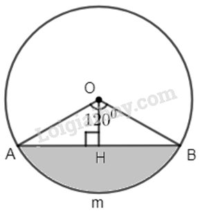 Hình viên phân là phần hình tròn bao gồm giữa một cung và dây trước cung ấy. Hãy tính diện tích hình viên phân AmB theo R. Biết góc ở tâm \(\widehat {AOB} = 120^\circ \) và bán kính hình tròn là R.