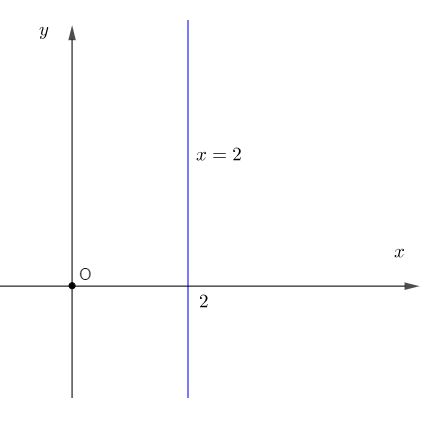 Đường thẳng \(x = 2\) song song với Oy cắt Ox tại điểm có hoành độ bằng 2 ( xem hình vẽ).