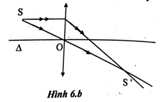 Vì tia qua quang tâm, sau khi khúc xạ thì truyền thẳng, suy ra điểm O; tia song song với trục chính, sau khi khúc xạ truyền qua tiêu điểm (hình 6b)