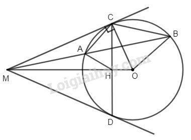 Từ điểm M ở ngoài đường tròn (O), kẻ cát tuyến MAB ( A nằm giữa hai điểm M và B) và các tiếp tuyến MC, MD. Gọi H là giao điểm của OM và CD.
