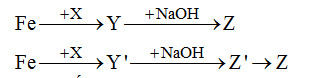 \(\begin{array}{l}Fe + F{e^{3 + }} \to F{e^{2 + }}\\Fe + C{u^{2 + }} \to F{e^{2 + }} + Cu\end{array}\)