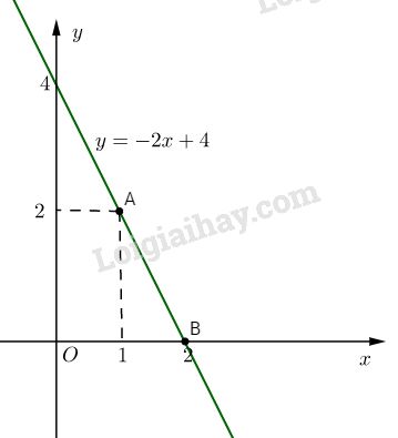 Đường thẳng \(y = -2x + 4\) qua \(A(1; 2)\) và \(B(2; 0)\).