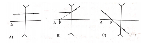 Câu 16. Dùng 1 thấu kính phân kỳ hứng ánh sáng mặt trời (chùm sáng song song ) theo phương song song với trục chính của thấu kính. Thông tin nào sau đây là đúng?