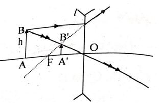 Hình vẽ và lập luận dựa vào tam giác đồng dạng, ta có ảnh ở đây là ảnh ảo và chứng minh được
