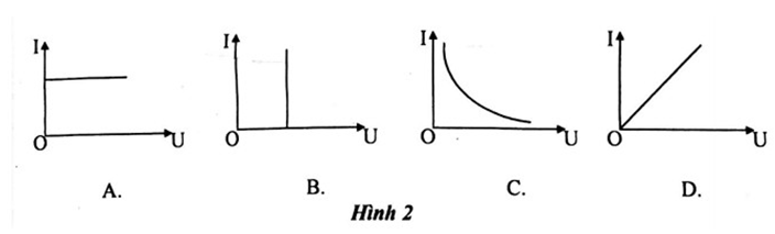 Câu 2. Trên hình 2 là một đồ thị, hãy cho biết đồ thị nào biểu diễn đúng mối quan hệ giữa cường độ dòng điện (I) chạy trong dây dẫn và hiệu điện thế (U) đặt vào hai đầu dây dẫn đó?
