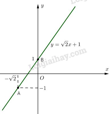 Đồ thị của hàm số là đường thẳng (d) đi qua hai điểm \(A\left( { – \sqrt 2 ; – 1} \right)\) và \(B(0; 1)\).