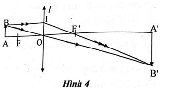 Câu 4: Vật AB đặt vuông góc với trục chính của thấu kính hội tụ, cách thấu kính 16cm, A nằm trên trục chính. Tiêu cự của thấu kính là 12cm.