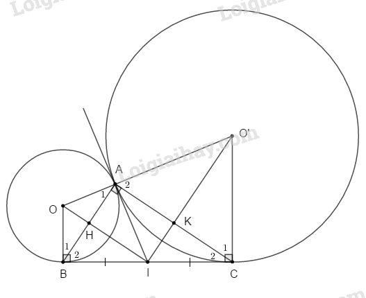 ⇒ AI là tiếp tuyến của (O) và (O’). Do đó IO và IO’ là phân giác của các góc kề bù AIB và AIC \( \Rightarrow \widehat {OIO’} = 90^\circ \)