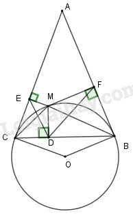 tứ giác \(DCEM\) có \(\widehat {MEC} = 90^\circ \) và \(\widehat {MDC} = 90^\circ \) nên \(\widehat {MEC} + \widehat {MDC} = 90^\circ + 90^\circ = 180^\circ \) mà hai góc này ở vị trí đối nhau nên tứ giác \(DCEM\) là tứ giác nội tiếp.
